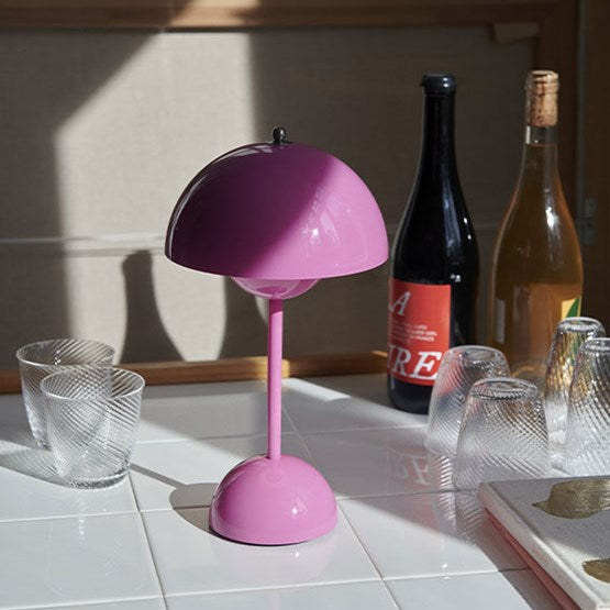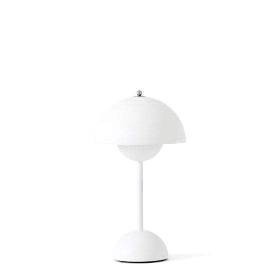 Verner Pantons succé Flowerpot från &Tradition är en riktig desigklassiker. VP9 är en lite mindre version än originalet VP3 som dessutom är uppladdningsbar & portabel. Batteritid ca 8h. Funkar lika fint i fönstret som på skrivbordet. Lampan formgavs 1969 och är namngiven efter Flower Power-epoken.