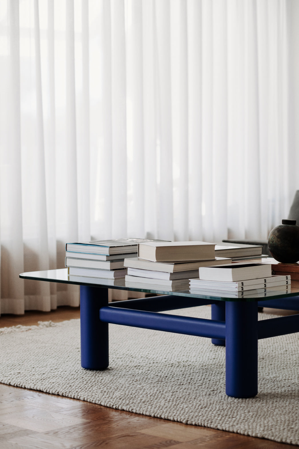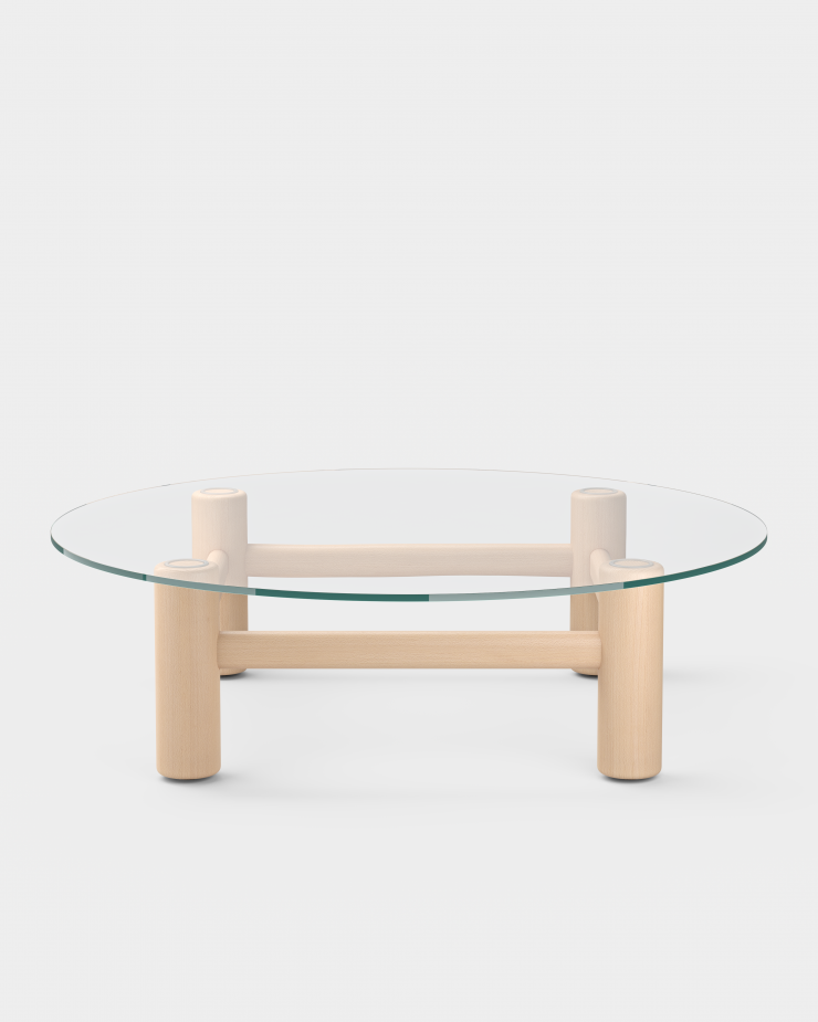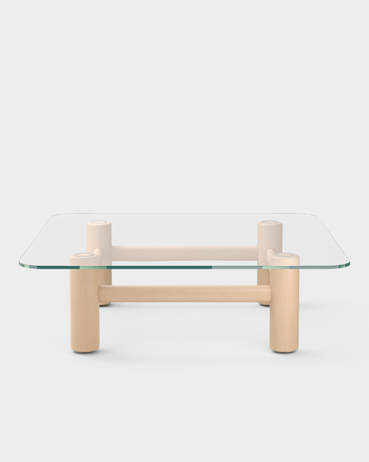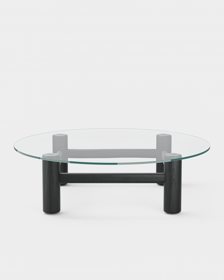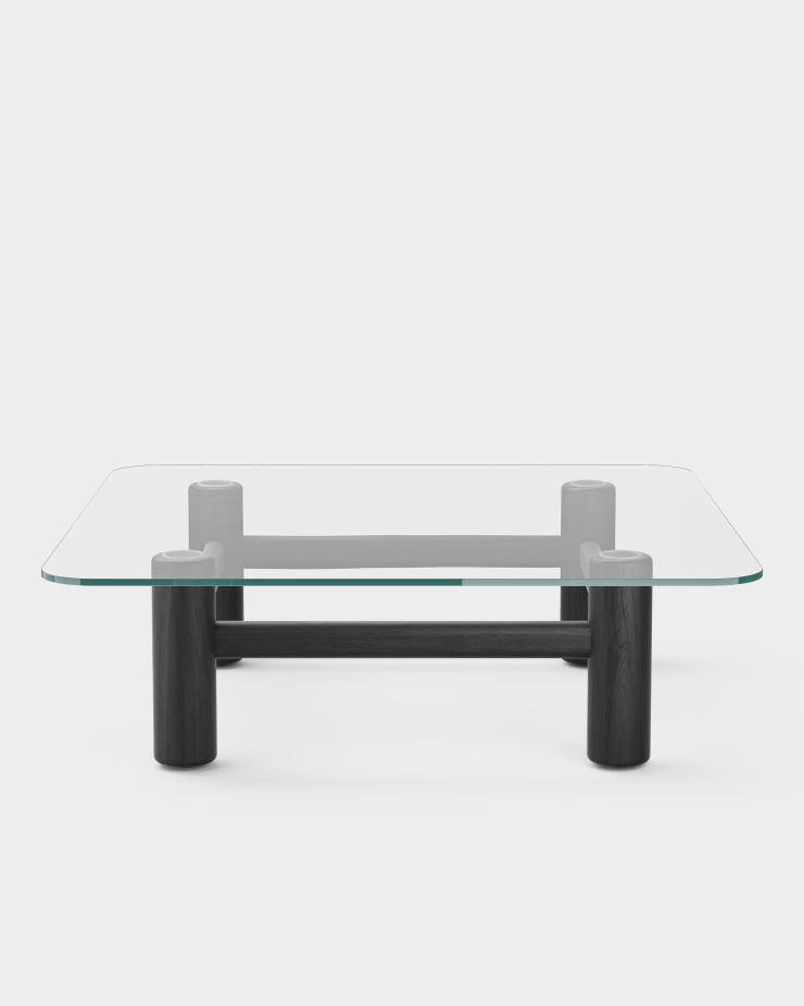 Boundary är ett robust soffbord i glas och trä, med överdimensionerade proportioner. Genom sin generösa storlek beskriver bordet tydligt ett område i rummet där det är placerat, därav dess namn.