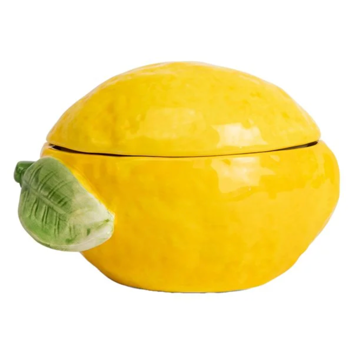 Lemon skål med lock från Byon är en förvaringsburk tillverkad i dolomit och inger nästan samma vitamininjektion som om man smakar på riktiga citrusfrukter. Citronskålen med lock är för allt man kan tänkas vilja gömma men ändå ha nära tillhands. En extra energikick som passar fint med övriga frukter i Byons sortiment.