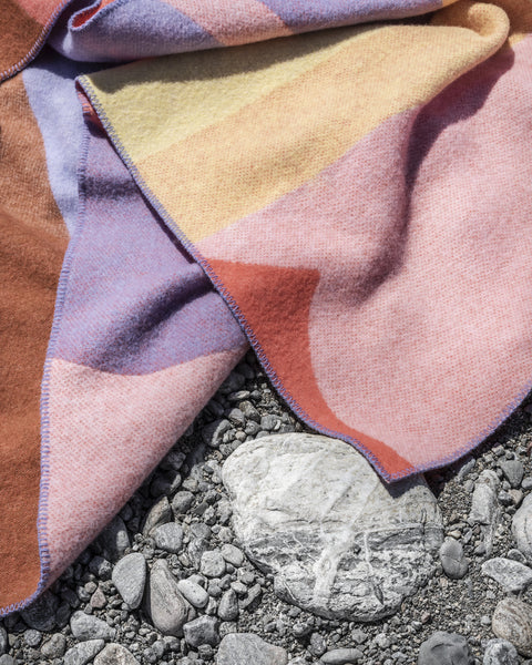 Utöver mattor, möbler och kuddar har Layered stora, mjuka ullfiltar i samma ikoniska mönster som de är så uppskattade för. Filtarna har producerats i samarbete med det erkända textilföretaget Klippan Yllefabrik vilket resulterat i både hög design- och kvalitetsgrad.