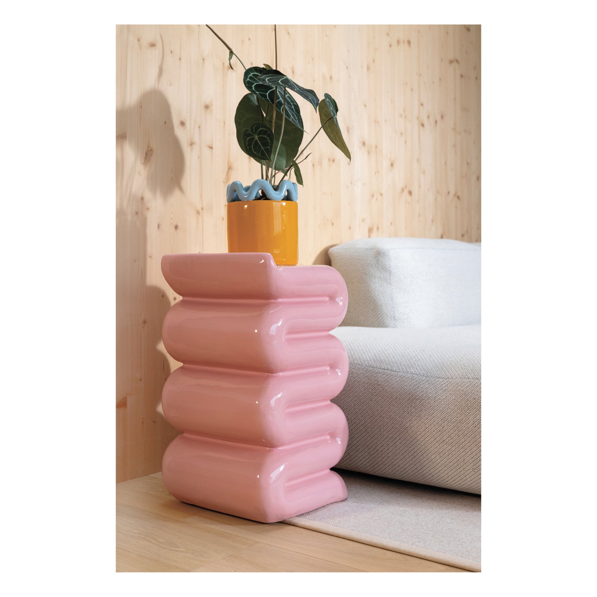 Rolig och formglad kruka i orange och blått från Holländska &Klevering