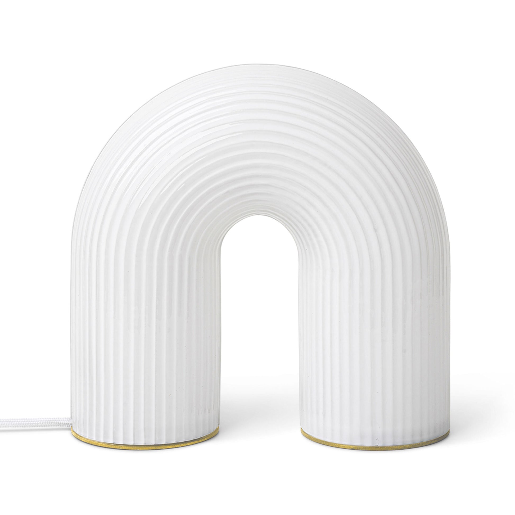 Vår Vuelta-lampa är en lampa med en skulptural båge som påminner om gamla pelare. Vuelta-lampa är gjord av opalglas med en krusad yta. Designad med en LED-ljuskälla som avger ett mjukt, diffust ljus, den har också en justerbar dimmer för ultimat kontroll av atmosfären. Använd den som en dekorativ lampa i ett mörkt hörn eller på en hylla för att lysa upp en samling böcker.