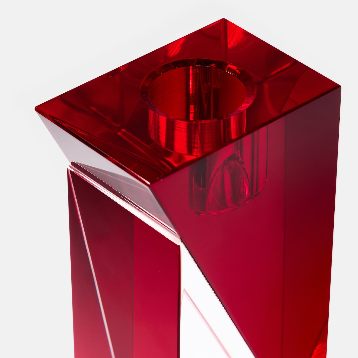 LJUSSTAKE "EDGY CANDLE HOLDER RUBY/CLEAR"