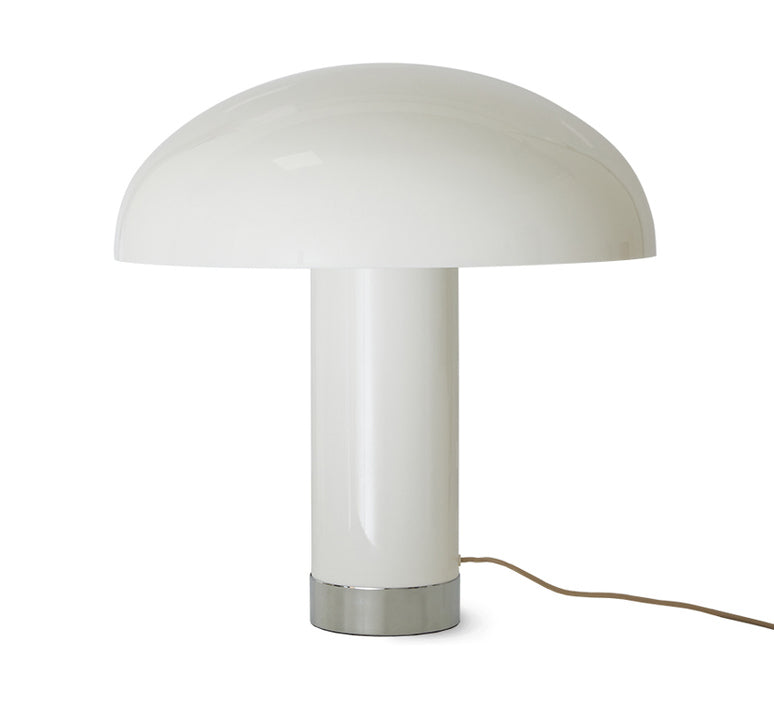 Lounge bordslampan kombinerar funktionalitet med en ikonisk dragningskraft. Resultatet är en slående design med en stark personlighet. Den runda, blanka skärmen och den cylindriska basen är båda upplysta. De kontrasterande elementen i designen skapar en originell och modern estetik. Finns i olika färger.