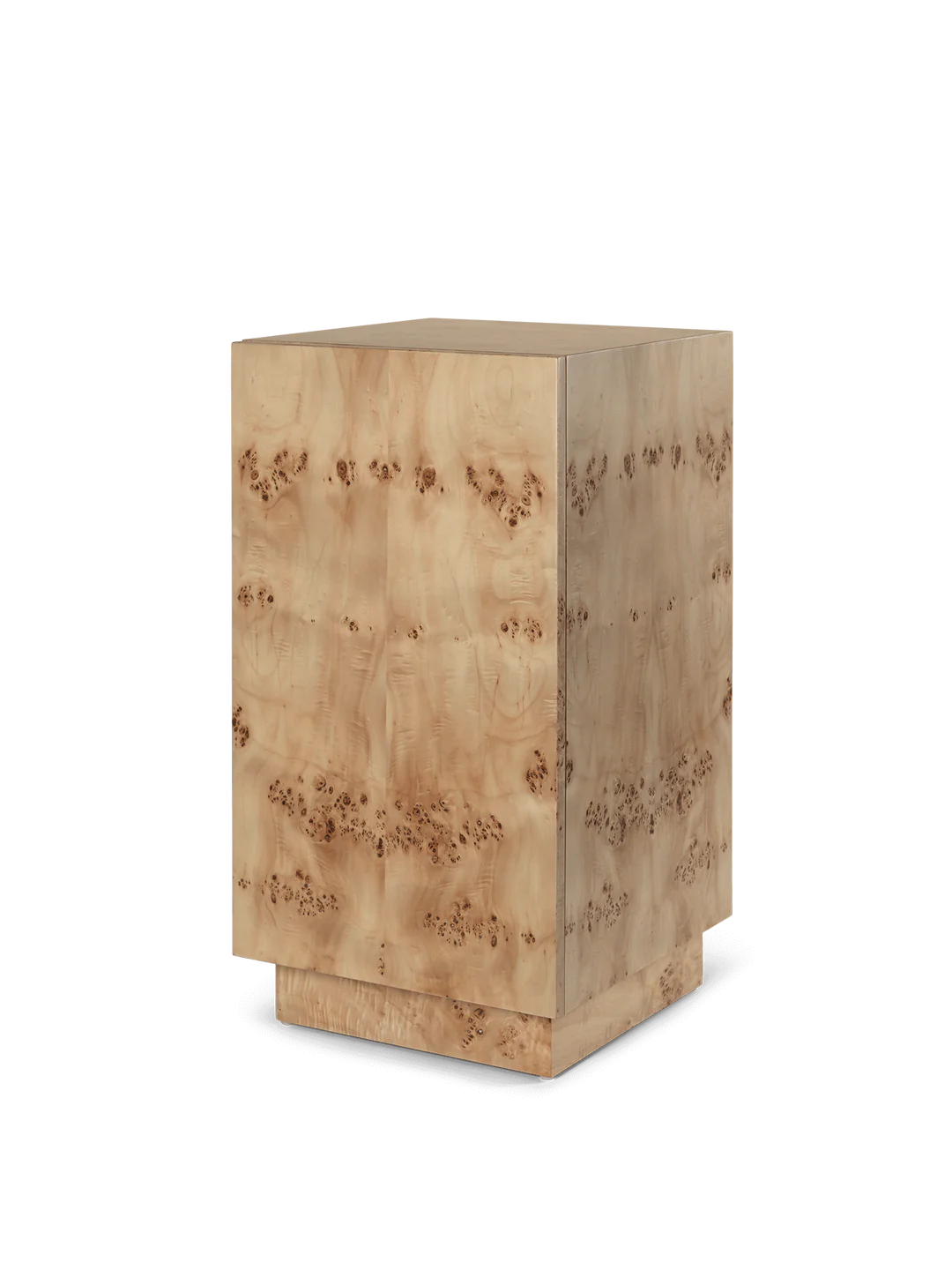 Burl Side Table är formgiven av Ferm Living. Sidobordet har fått sitt namn från det elegant mönstrade FSC-certifierat burlträet som bordet är tillverkat i. Denna mångsidiga och stilrena möbel passar perfekt både som nattduksbord och sidobord, det anpassar sig smidigt efter dina behov. Dess dolda förvaringsutrymme inkluderar en justerbar hylla som kan flyttas efter de föremål som ska förvaras. Den pelarliknande designen utstrålar en elegant uttrycksfullhet som förhöjer helhetsintrycket och stämningen i vilket rum som helst.