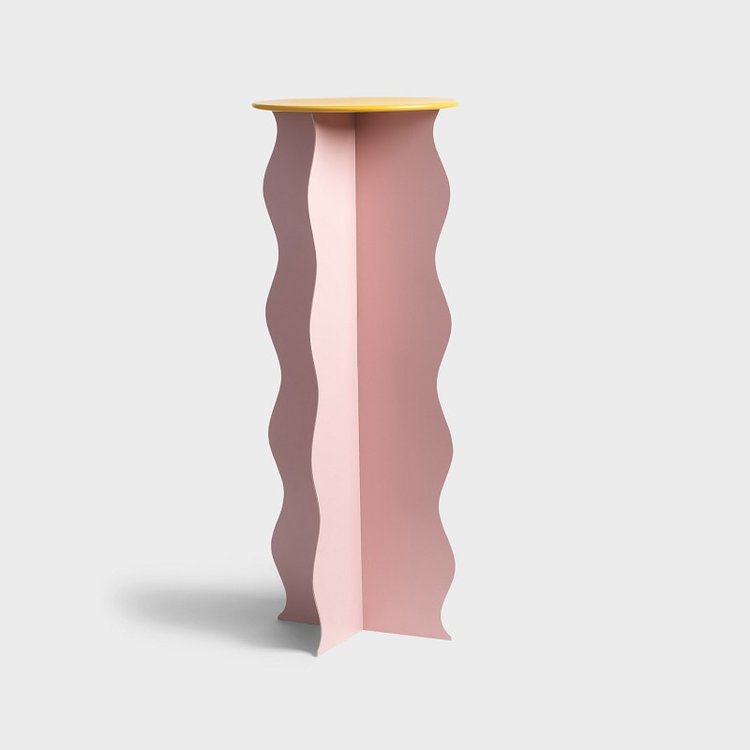 Färgglada och snygga! Den vågiga pelaren är ett roligt sidobord i metall och kan användas till din favoritväxt, vinglas eller bok.