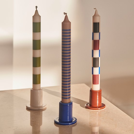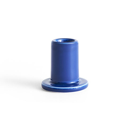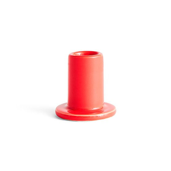 Tube Candleholder, tillverkad i lergods med en halvtransparent glasyr, smälter samman en minimalistisk rörformad design med en dämpad palett. Ljusstaken är designad för att användas med HAY-ljus och har en cirkulär bas som balanserar designen och fångar upp eventuellt droppande vax. Ljusstakarna finns i olika höjder och färger och kan användas individuellt eller grupperade i kontrasterande design.