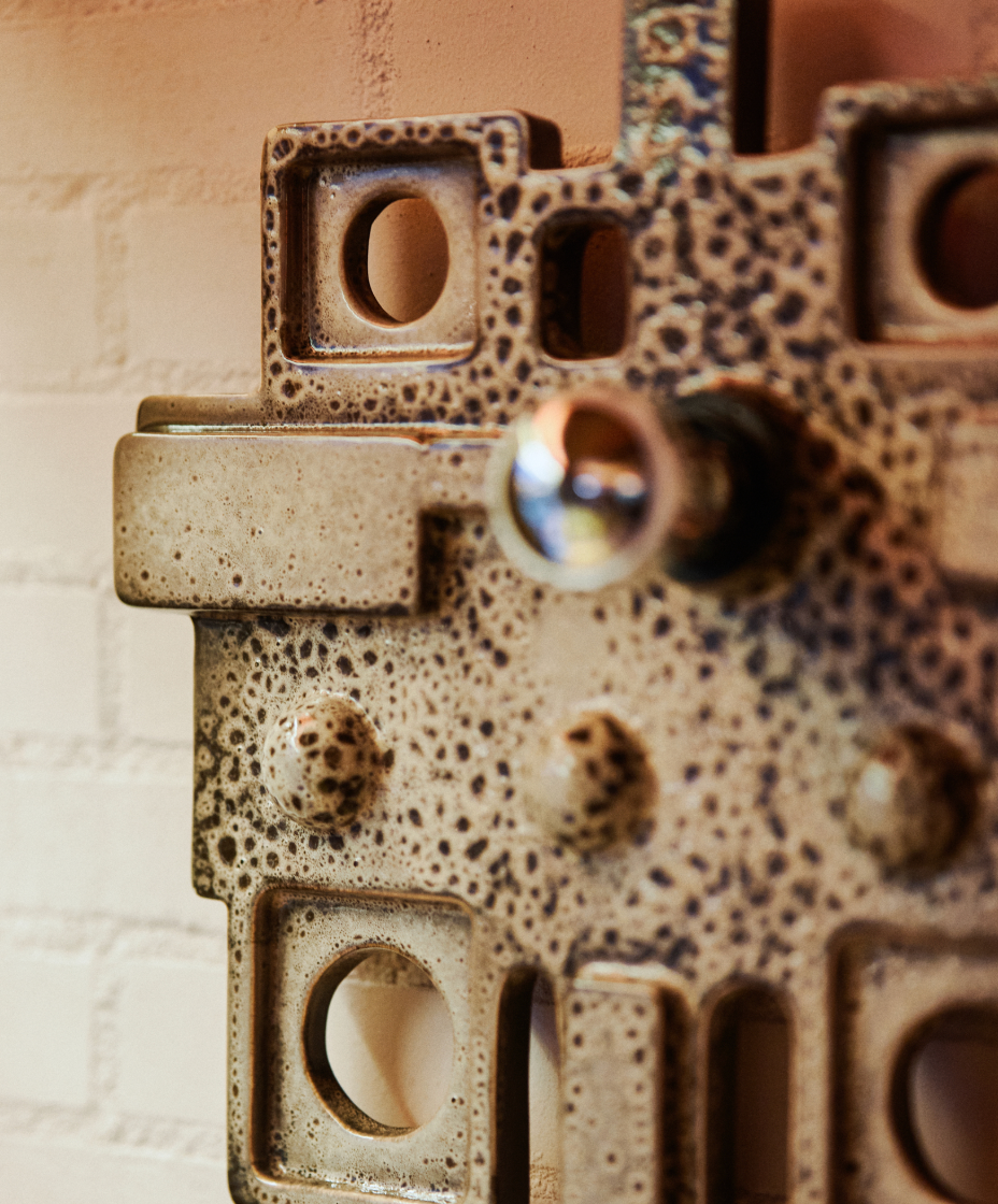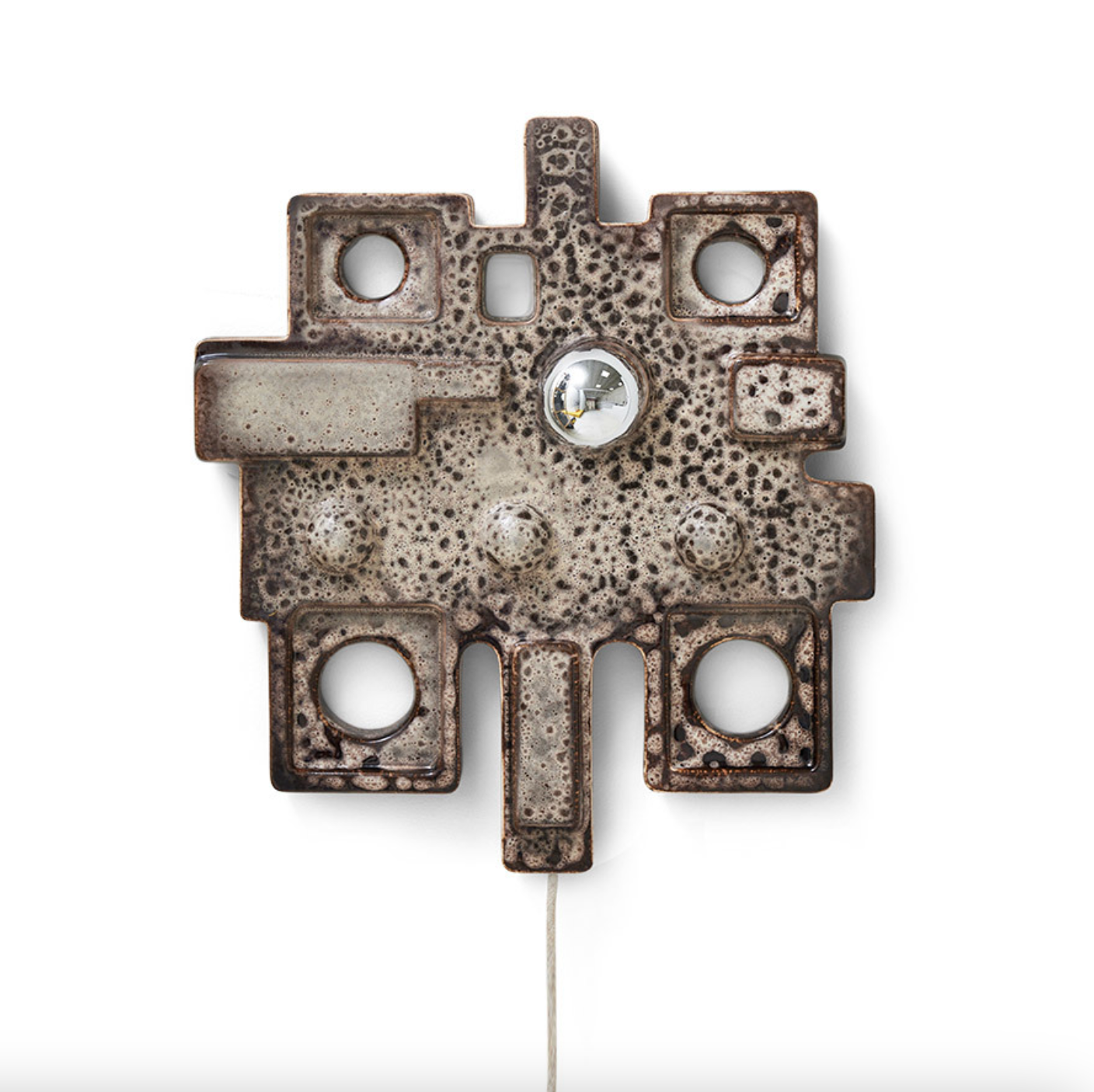 Brutalistisk vägglampa tillika skulptur av glaserad keramik