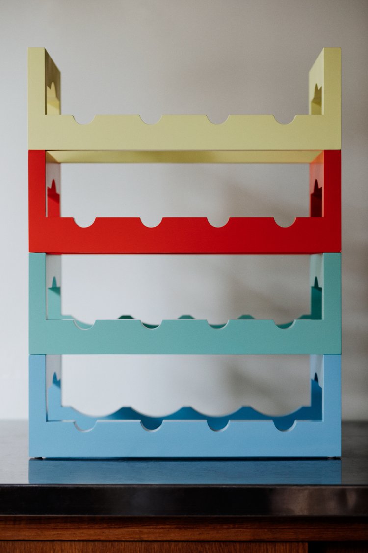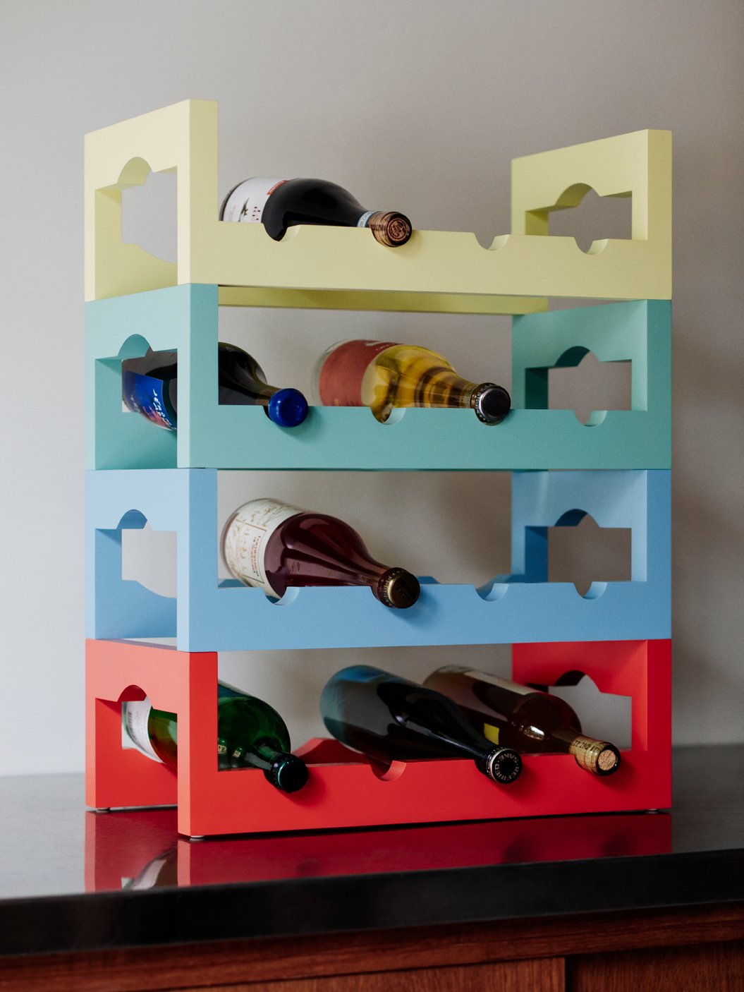 Esteriör har fått färgsätta vinställen i fyra unika färger som utgår från grundfärgerna som är fina var för sig men som också passar bra tillsammans, oavsett hur du vill kombinera dina vinställs-delar.